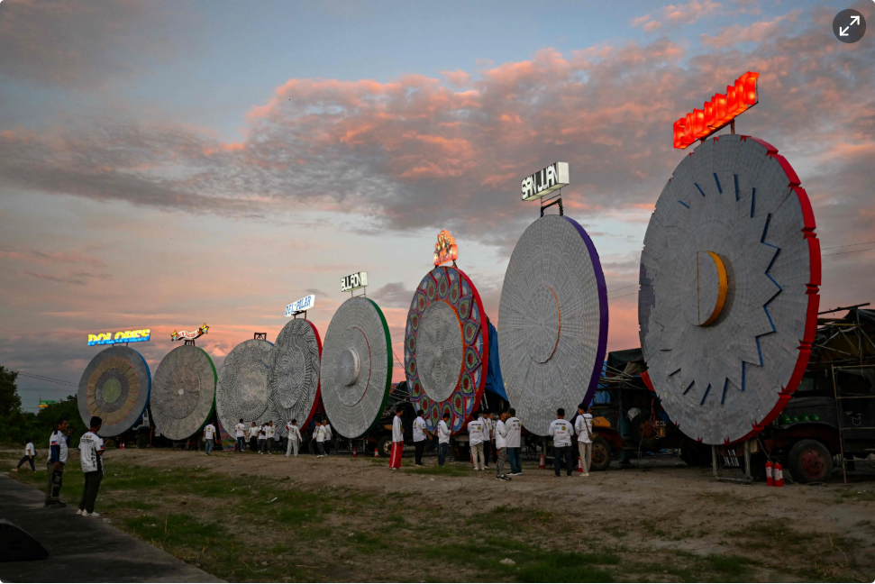 这些圆盘状大灯笼可高达六米,需时三个月手工制作,是当地年度巨型灯笼节的主角。