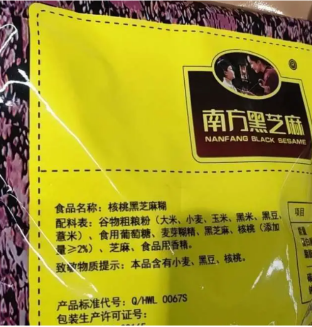 有网民曝料称南方黑芝麻糊中,黑芝麻占比排在第四位。