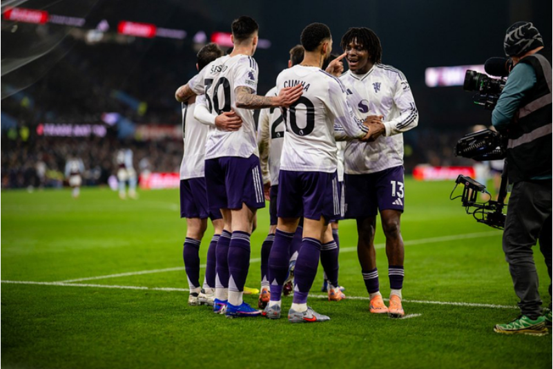 半场补时第3分钟,卡什后场盘带失误,多古抢断后传向禁区,库尼亚小角度抽射破门,曼联1-1维拉。