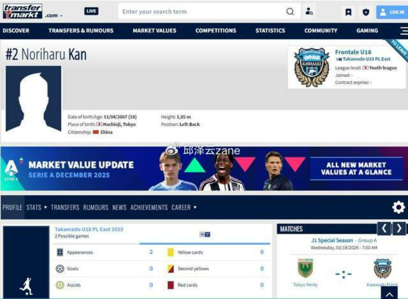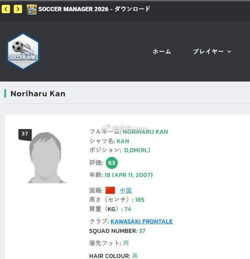 他会是中国的郑大世吗?从各大数据网站和官方消息来看,1名日本J1联赛的左后卫目前是中国国籍,未来甚至有机会代表中国男足出战。由于他出生在日本东京八王子市,而且一直是川崎前锋的青训球员,这也很容易让人想到当年朝鲜男足头号球星郑大世!