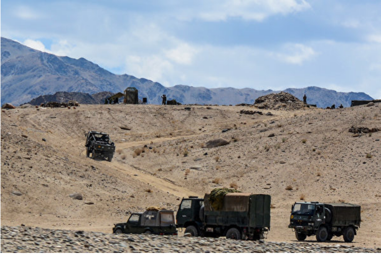 2020年9月2日,中印边境,印度军车队在运输物资。