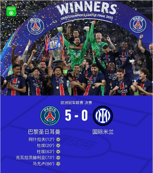 6、2024-2025赛季欧冠决赛,巴黎5-0国米 热度值:3310718