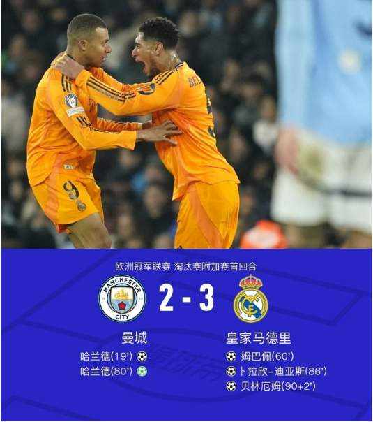 7、2024-2025赛季欧冠淘汰赛附加赛首回合,皇马绝杀曼城 热度值:3070682