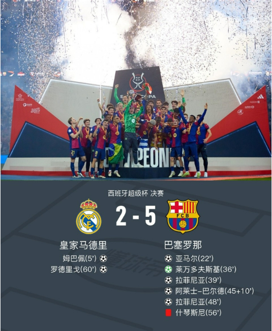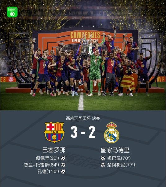 2、2024-2025赛季国王杯决赛,巴萨战胜皇马夺冠 热度值:3432862
