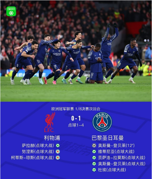 8、2024-2025赛季欧冠1/8决赛次回合 巴黎淘汰利物浦 热度值:2930398