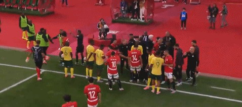 边线防守时,哈尼背后踢倒莫科纳,主裁判先是向哈尼出示黄牌,随后掏出了红牌。这次判罚让埃及球员非常不满,马尔穆什、萨拉赫都向主裁判抗议。
