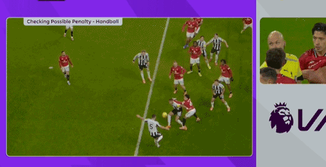 第62分钟,纽卡斯尔联角球攻势,舍尔后点抽射击中利桑德罗-马丁内斯,随后示意对方手球。不过裁判根据VAR提示,判定是反弹球,因此没有判罚点球。
