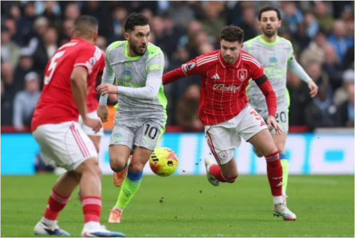此时的蓝月,前场赖因德斯频繁丢球,哈兰德被同样高大的米伦科维奇亦步亦趋,翻车似乎只在须臾,但这一次挽救他们的,仍是谢尔基的才华。角球战术中格瓦迪奥尔后点回摆,禁区前沿的蓝月10号不停球贴地斩打穿森林防线,再度超出。当法国人模仿哈兰德打坐庆祝致敬队友时,戴奇再度暴走。森林主帅认定曼城开出角球时,落位后门柱的吉布斯-怀特和奥赖利有身体接触并倒地,起身补防时不幸沦为背景板。