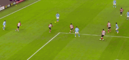 第91分钟,谢尔基右路强行突破,福登射门被封堵,格瓦迪奥尔近距离补射,又被桑德兰后卫在门线前解围出来。