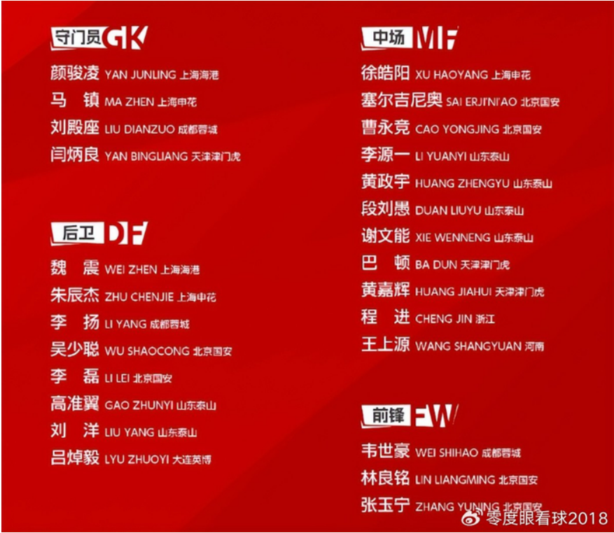 不过,从邵佳一新国足名单来看,最让中国球迷满意的是,他大胆调整,一口气拿掉了3位此前在国足混日子过的“水货”。这3位遭人诟病的国足“水货”分别是徐新、韩鹏飞以及杨泽翔。
