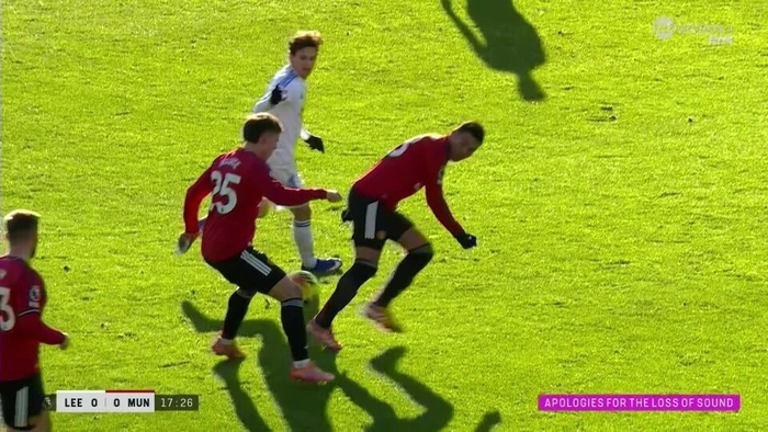 易边再战,利兹联首先打破了僵局。第62分钟,最近备受好评的曼联年轻中卫埃登·海文防守出错,布伦登·阿伦森抢占身位优势,面对塞纳·拉门斯低射入网,利兹联1-0领先曼联。