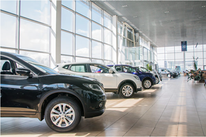 市场不佳,中国半数经销商没能完成2025年的销售任务。汽车经销商大厅内展示新车,资料照。