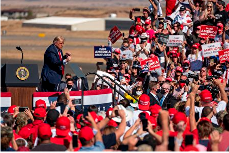 2020年10月19日,美国亚利桑那州普雷斯科特(Prescott),总统川普在普雷斯科特地区机场举行竞选集会,他在集会上跳舞。