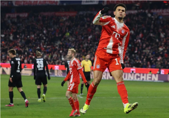 第30分钟,迪亚斯再次挺身而出,他接到奥利塞右路的传中,门前头球破门,帮助拜仁2-1再次将比分超出!
