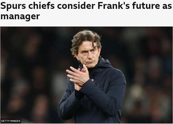 BBC记者SM消息,热刺主帅弗兰克正接受内部审查,俱乐部正考虑他的去留问题。