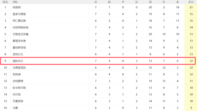 由于主场输给阿森纳,国米前7轮过后拿到12分,目前在欧冠排名第9,哪怕下一轮能够在客场战胜多特,国米也大概率要踢附加赛。不过就算他们能晋级淘汰赛,国米本赛季也很难走远,以他们的实力,欧冠争冠基本无望。万一在附加赛遇到强队,国米随时会提前出局。