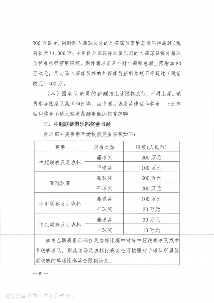 外援薪酬总额上限增加200万欧元,但除入籍球员外的外援薪酬总额不得超过1,000万欧元(税前)