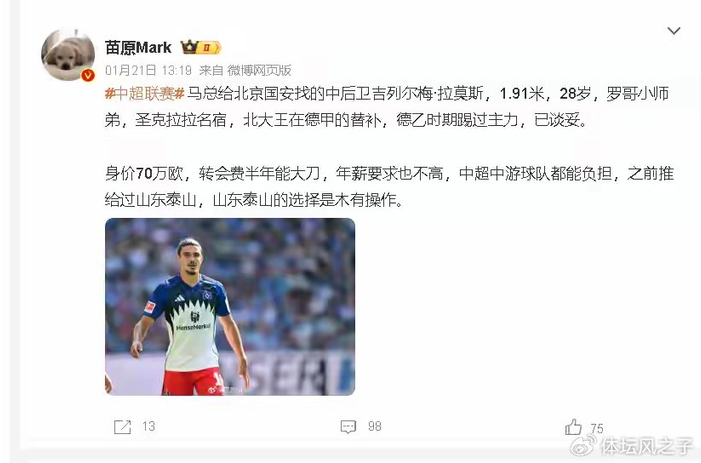 吉列尔梅·拉莫斯,这位28岁的葡萄牙籍中卫,此前被推荐给山东泰山时,泰山队认为其履历不够出色而选择放弃。如今,他却成了北京国安的“香饽饽”。拉莫斯履历丰富,在圣克拉拉堪称名宿,还在德甲担任过替补,在德乙更是主力球员。此次他以70万欧的身价来到中超,转会费还有砍价空间,年薪中游球队也能负担得起,这无疑是一笔极具性价比的引援了。