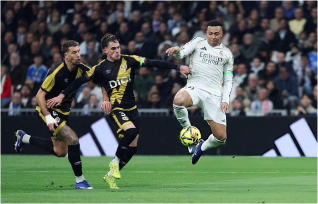 多打一人的皇马在常规时间未能终结比赛,直到伤停补时阶段才获得点球机会,姆巴佩顶住压力主罚命中,帮助球队在主场惊险地以2比1取胜,在积分榜上继续紧咬巴塞罗那。