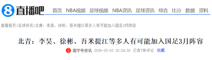 今天晚上,据北青体育的最新报道,为配合各队精心备战,中国足协与各队教练组已经分别设计好各队全年的备战与竞赛计划,其中U23国足成为近期足坛的焦点,该媒体强调邵佳一已经公开表态,会在3月份集训中征调部分U23国足的精英球员,如在U23亚洲杯赛上大放异彩的门将李昊、已经留洋英伦的后腰徐彬、防线上的吾米提江、胡荷韬、锋线的拜合拉木等。