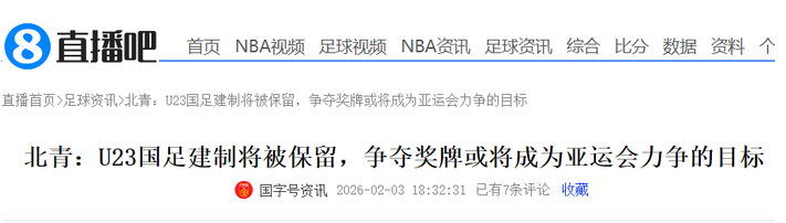 对于今年9月份开幕的亚运会,U23国足参赛的目标备受关注,北青体育最新消息称U23国足建制将被保留,球队在今年的名古屋亚运会上或将力争一枚奖牌,也就是前三名的成绩。