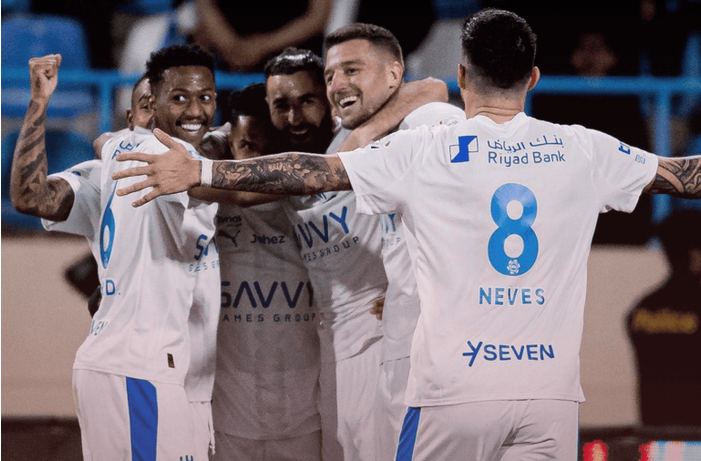 第69分钟,利雅得新月中路快速反击,本泽马禁区弧顶处插上突入禁区获得半单刀良机,本泽马投桃报李也给马尔科姆做了个好球,马尔科姆轻松将球挡入空门,利雅得新月4:0领先。4分钟后阿科多后场还失误送上大礼,马尔科姆断球后突入禁区轻松过掉豪萨维获得单刀机会,马尔科姆无私横传,多萨里将球挡入空门,利雅得新月5:0领先。补时阶段,利雅得新月快速反击,多萨里接球狂奔突到禁区弧顶处获得单刀机会,多萨里挤开回防球员冷静推射得手,利雅得新月将比分锁定在6:0。