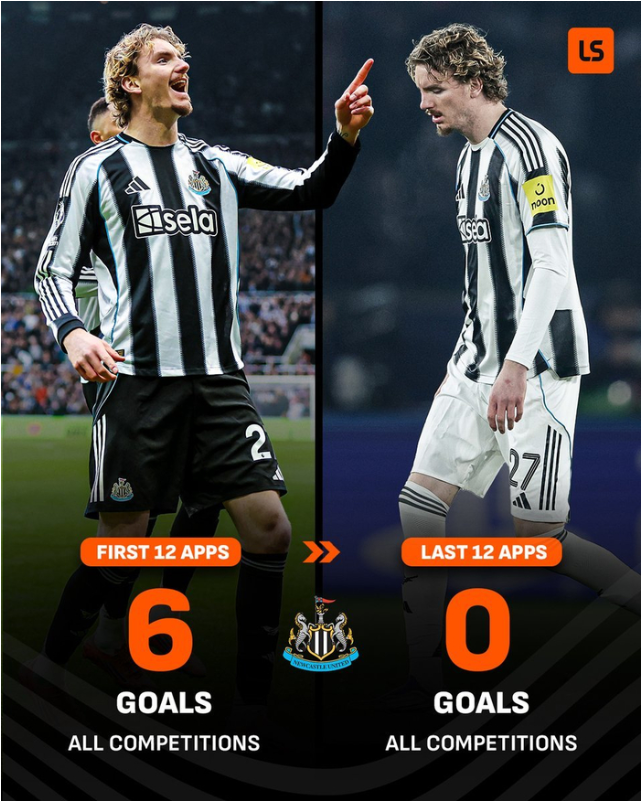 英联杯半决赛,纽卡斯尔联1-3输给曼城。代表喜鹊军团首发的沃尔特马德再次度过了郁闷的一晚,8000万先生的球荒达到了12场。