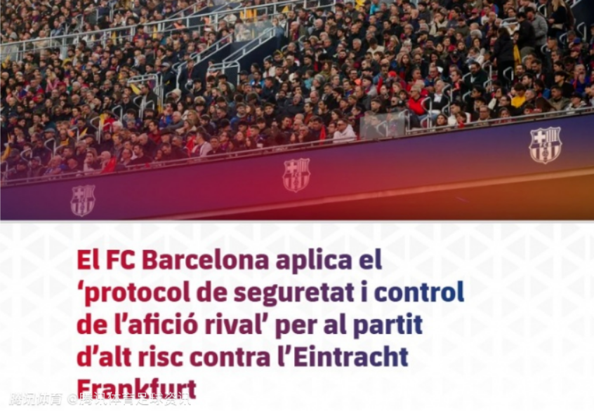 巴塞罗那俱乐部发布官方公告,将12月10日凌晨4点(当地时间)在诺坎普球场对阵法兰克福的欧冠比赛列为“高风险赛事”,并已启动严格的安保管控方案。