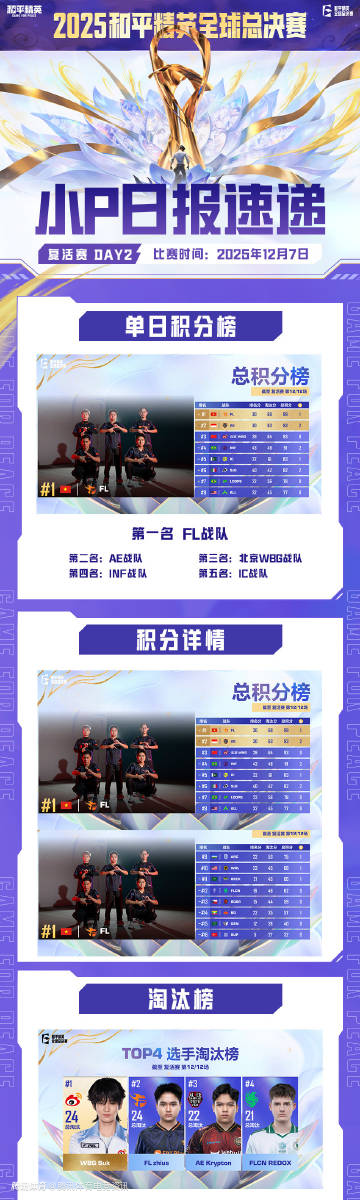 12月8日, 2025和平精英全球总决赛昨日战报: