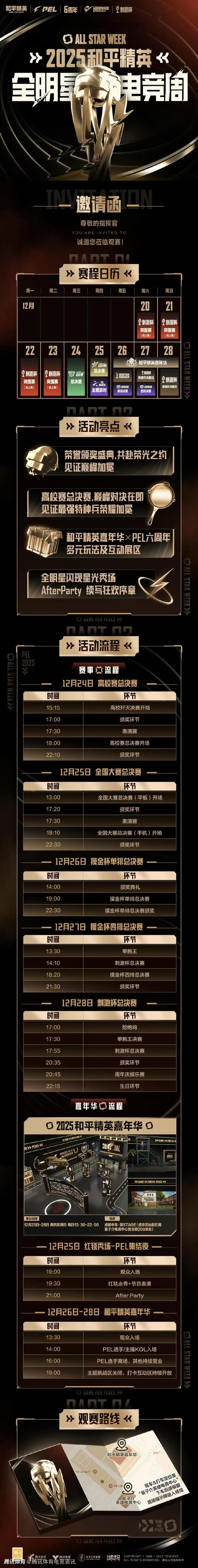 12月24日-12月28日,2025和平精英超级电竞周火热来袭,从一打到七,把把都刺激!各位尊敬的指挥官,诚邀您莅临观赛!