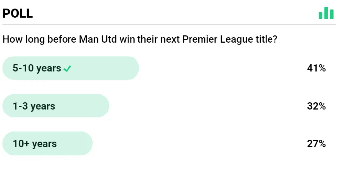 英国《地铁报》的调查显示,不少人支持弗爵对曼联夺冠所需时间的预测,认为需要5到10年才能实现目标。对于弗爵的预言,现任主帅阿莫林表示并不认同,他认为球队可以更早夺冠。根据吉姆·拉特克里夫爵士的计划,曼联应该在2028年球队建立150周年大庆时重夺英超冠军。