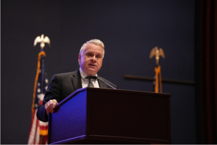 2025年7月17日下午,美国资深国会议员克里斯‧史密斯(Chris Smith)在国会山举行的一场抵制中共跨国镇压的论坛活动上。