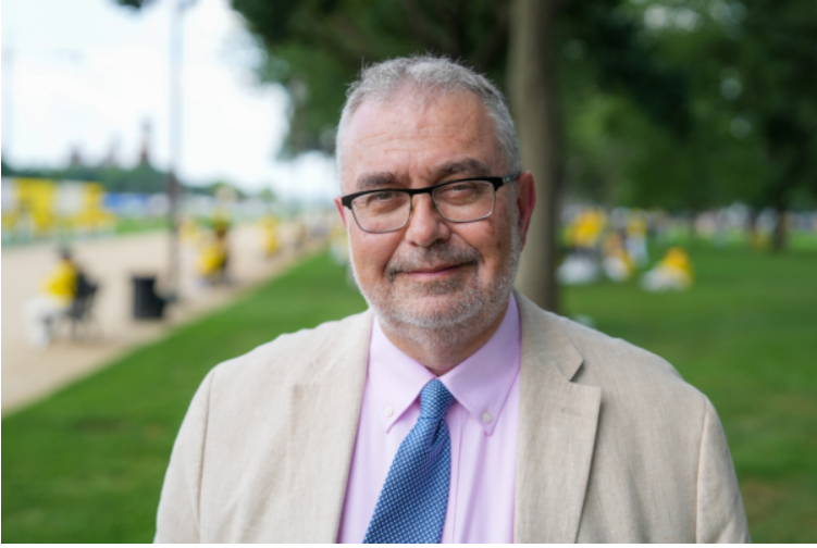 2025年7月17日,美国国会及行政当局中国委员会(CECC)时任幕僚长陶智(Piero Tozzi)参加在华盛顿国会山附近国家广场(National Mall)举行的法轮功反迫害26周年大型集会。
